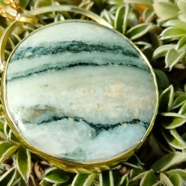 Con colores verdosos con puntitas negras, grises y blancas, tiene un aspecto rústico y fuerte, ayuda a tomar decisiones con firmeza. Se asocia con el coraje, la voluntad y el propósito. Excelente para terapeutas o personas que inician proyectos.