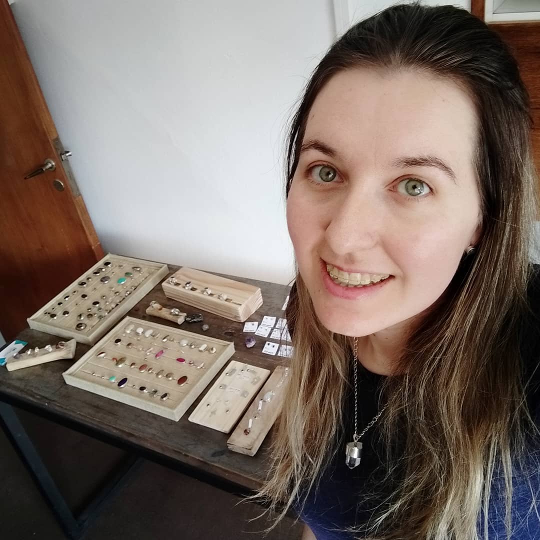 Me llamo Pilar Sanz, tengo 39 años. Nacida y criada en Bariloche. Alrededor de mediados de 2017 empecé a hacer joyería. Soy autodidacta. Tomé solo un par de clases al principio y después seguí sola...prueba y error. Mi abuelo paterno y mi papá fueron joyeros (grandes y reconocidos joyeros de Bariloche), creo que haber estado de chiquita en el taller ayudó hizo que algo quede dando vuelta en los genes, hizo que todo fluya más fácil y rápido. Dos de mis hermanos siguieron también el oficio y ellos me van guiando y aconsejando en este hermoso camino.