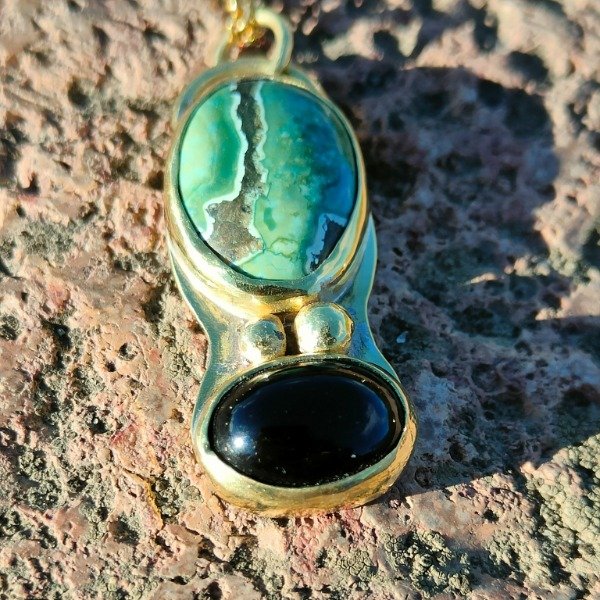 Colgante con Turquesa natural y Ónox Negro