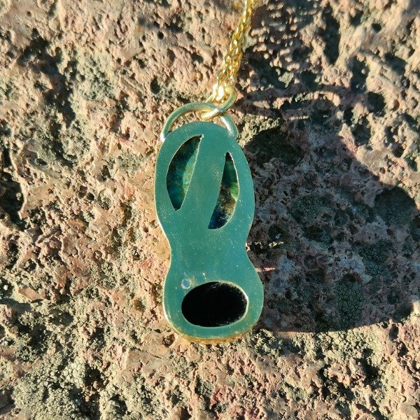 El colgante es de bronce e incluye cadena de acero quirúrgico.